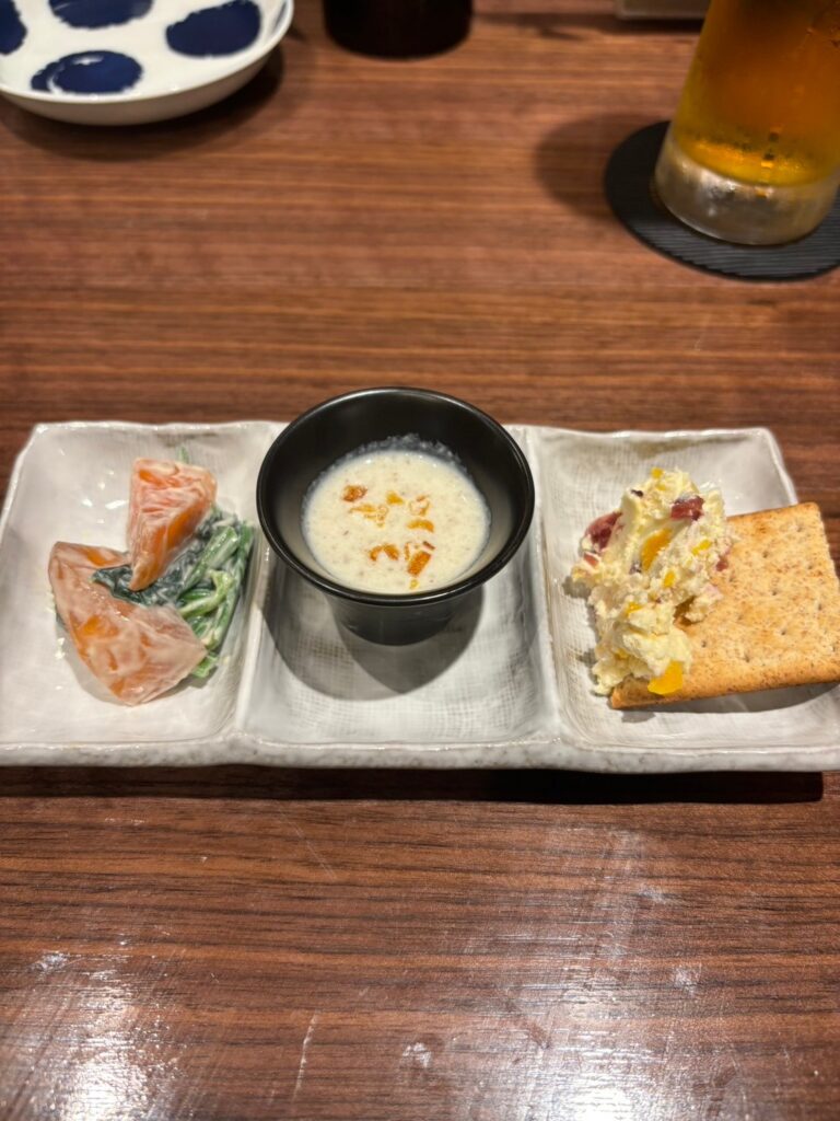 お通しのおつまみ3種。
